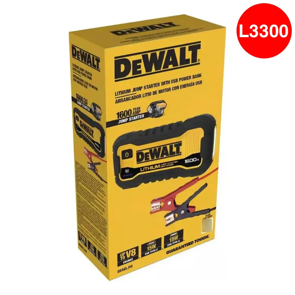 El arrancador de batería automotriz Dewalt 1600A ofrece una potencia excepcional para poner en marcha tu vehículo de forma rápida y segura.