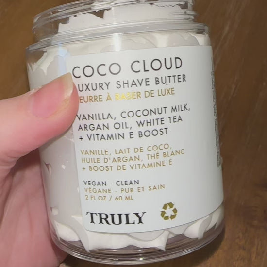 Consigue el afeitado más suave y sedoso de tus sueños con la Manteca de Afeitar Coco Cloud de TRULY: una fórmula batida enriquecida con leche de coco, manteca de semilla de mango y aceite de argán que prepara, hidrata y calma la piel mientras combates los vellos encarnados, la irritación y las protuberancias.