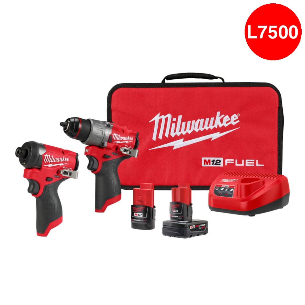 El kit combinado MILWAUKEE® M12 FUEL™ 3692-22CT incluye el taladro subcompacto más potente y el atornillador de impacto más rápido y compacto del mercado.